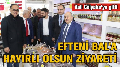 Düzce Valisi Zülkif Dağlı Efteni Bal’ı ziyaret etti. Vali Dağlı’ya ziyaretinde Gölyaka Kaymakamı Adem Keleş, Gölyaka Belediye Başdanışmanı Bekir Akbulut, İl Garnizon Komutanı Yılmaz Özdemir ve Düzce İl Emniyet Müdürü Hüseyin Deniz eşlik etti.